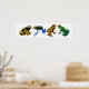Original fine art design of coloful Poison Frogs, also known as Dart or Arrow frogs, by illustrator Carolyn McFann of Two Purring Cats Studio.