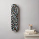 A fun, colourful skateboard design with a polka dot pattern on a black background in pink, grey, green and yellow.