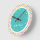 Colourful Polka Dot Blue Kid's Bedroom wall clock personalized with their name. Part of a large rainbow polka dot bedroom set.