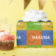 The layout is balanced and visually engaging, drawing the viewer's eye to the central message of "HAKUNA MATATA," which is split across the top and bottom squares. This arrangement creates a harmonious connection between the colourful patterns and the uplifting phrase.