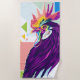 This incredibly colourful portrait of a rooster offers up a modern, trendy, and unique interpretation of this barnyard animal. Shades of purple, pink, yellow, and blue come together in this beautifully vibrant pop art portrait.