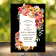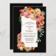 Invite your friends and loved ones to your wedding to witness and celebrate the beginning of your lifelong journey with this vibrant invitation that features vibrant orange, pink, and yellow poppies cascading over a black frame that contains your essential information. The customizable text allows you to effortlessly add your names, wedding date, and the necessary details of your celebration. A variety of paper types and corner styles are available for your unique invitations, along with the option to download.