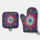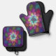 Colourful Psychedelic Flower Abstract Fractal Art Oven Mitt & Pot Holder Set