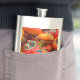 The product is a good size and came exactly as it was pictured. The lid is not attached to the flask, which could be dangerous on drunken nights... The print came out surprisingly well and looks very sharp. Would definitely recommend.