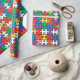 Each puzzle piece is rendered in vivid hues—think lively reds, blues, greens, and yellows, creating a dynamic and eye-catching design. This whimsical wrapping paper is ideal for birthdays, children’s parties, or any celebration where you want to bring a smile to someone’s face.