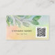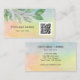 This unique business card is decorated with watercolor greenery on a colourful background and space for your QR Code.