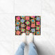 Show your quilt love and welcome guests with this quilt art door mat that's great for home or a quilt business. This original quilt art combines favourite quilt blocks such as log cabin, stars and pinwheels plus unique blocks to form a quilt design with vibrant and dynamic colours that pop on a black background. The block colours are green, yellow, pink, orange, red, and turquoise blue. Small yellow flowers are in the background between the blocks. This makes a great gift for a quilter or quilt lover. Fully customizable Quilt art is from fabric and quilt designer Phyllis Dobbs.