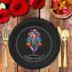 A bright colourful racehorse head and mane on a black background are featured on these derby party paper plates. MATCHING items in our collection.