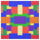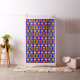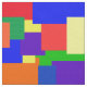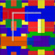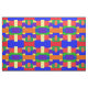 This colourful fabric features a patchwork quilt design in rainbow colours with a textured look.
