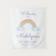 This adorable watercolor rainbow and clouds birthday party welcome tapestry is a sweet way to great your guests to the big event!