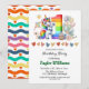 A cute design with a colourful rainbow number and a dancing unicorn! You can personalize this Invitation with your own details. A cute charming design!