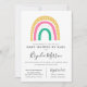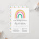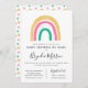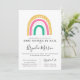 Cute illustrated colourful rainbow, baby shower by mail invitation. Template allows all text to be customized. Back of card features coordinating star pattern.