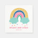 Cute colourful illustrated rainbow, personalized paper napkins. Colourful abstract doodle rainbow, clouds, doodle shapes and raindrops. Template provides two lines for your custom text in coordinating pink colour.