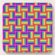 This artwork features colourful rainbow blocks in a fun neon pattern.