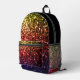 Colourful rainbow faux glitter sparkles and black printed backpack