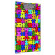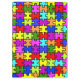 Jigsaw puzzle pattern in colourful rainbow colours.