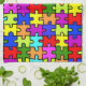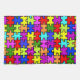 Jigsaw puzzle pattern in colourful rainbow colours.