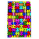 Jigsaw puzzle pattern in colourful rainbow colours.