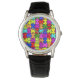 Jigsaw puzzle pattern in colourful rainbow colours.