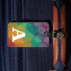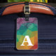 Colourful geometric low poly design, rainbow ombre modern background. White mandala decoration, oriental flower design luggage tag with initial letter