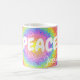 A beautiful Mug with colourful Rainbow Colours special digital effect background with a white "PEACE" text and name which you can personalize from the menu. A lovely gift to start the day with colour and happiness. Original design by Sunfreestar.