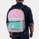 Colourful Rainbow Plaid Monogram Name Girls Printed Backpack