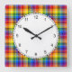 Colourful Rainbow Plaid Pattern Square Wall Clock