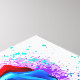 Large, blooming rose with rainbow petals on white background, painted over with splashes of colourful, bright paint. 3d