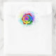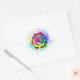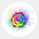 Large, blooming rose with rainbow petals on white background, painted over with splashes of colourful, bright paint. 3d