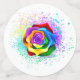 Large, blooming rose with rainbow petals on white background, painted over with splashes of colourful, bright paint. 3d