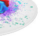 Large, blooming rose with rainbow petals on white background, painted over with splashes of colourful, bright paint. 3d