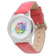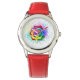 Large, blooming rose with rainbow petals on white background, painted over with splashes of colourful, bright paint. 3d