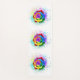 Large, blooming rose with rainbow petals on white background, painted over with splashes of colourful, bright paint. 3d
