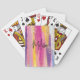 Playing cards with an abstract background design. Vibrant stripes in both bold and pastel colours. Pinks, blues, purples and yellow colours combined with faux gold sparkly glitter layered over top.