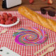 Great accent for an outdoor summer party. Bright colors, vibrant floral design