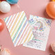 Beautiful, mythical and enchanted colourful rainbow, unicorn face and floral birthday party invitation. This sweet magical unicorn design features a soft watercolor unicorn illustration adorn with beautiful floral flowers and leaves in pink, teal, purple, orange and yellow with faux pink and gold glitter accents to add a magical and enchanted look. The reverse side features a colourful watercolor rainbow striped pattern that beautifully complements the front artwork. All illustrations contained in this magical enchanted watercolor rainbow unicorn birthday party invitation are hand-drawn original artwork by Moodthology. You can customize the text size, text colour, font and layout for your own personal design preference.