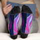 Waves of colour swirl and move from top to bottom (or left to right, depending on how you look at it) on a navy blue background in this rainbow coloured design.