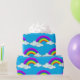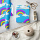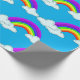 Colourful Rainbows and Clouds on Blue Wrapping Paper