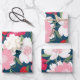Pretty red floral illustrated pink red and white flowers blue wrapping paper sheets. Perfect for weddings, business, or special occasions.