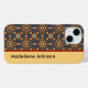 This stunning iPhone and Samsung cell phone design features a vivid and sunny gold, red, and blue coloured tribal pattern of circles and other geometric shapes with a swash of gold and your name or initials in bold typography along the right side. The warm colours have a contemporary, distinct look to personalize your phone. Make sure to type your name and replace the placeholder text when ordering.