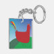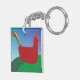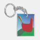 Colourful Red Rooster with Rainbow Tail on Hill Keychain