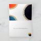 Send a personalized message of appreciation using these colourful, bright, and cheerful note cards! A geometric circular pattern featuring vivid blues, oranges, and yellows makes up the modern, eye-catching theme. This pattern receives an additional elegant touch with an abstract gold overlay.