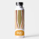A colourful retro vintage vibe sunrise sunburst water bottle personalized with your name in a retro typeface. Groovy 70's style in olive greens, orange and terracotta.
