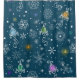 Colourful christmas light and snowflakes seamless pattern over midnight blue background.