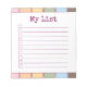 If you need to create your own special checklist and love fresh takes on retro styles, you might appreciate this Colourful Retro Custom Checklist Lined Notepad from Zazzle! Contains 10 lines, 10 checkboxes and plenty of whitespace on the sidelines for doodling or stickering while talking on the phone like we did back in the day. Easily personalize the list name on the front to meet your gifting needs. Made from FSC certified paper. 5.5″ x 6″ in size. Contains 40 single side tear-away pages. Sold by the pad or in quantities of 2-500. Save when you buy more - no minimums! 100% satisfaction guaranteed. Ideal for to do lists, grocery lists, packing lists, study lists, goal lists & more!