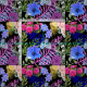 Colourful Retro Floral Fern Botanical Foliage Fabric, simple dark floral design.