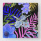 Colourful Retro Floral Fern Botanical Foliage Square Wall Clock