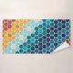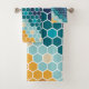 Colourful Retro Floral Mosaic Hexagon Pattern Bath Towel Set