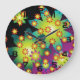 Colourful Retro Flowers Large Clock