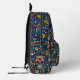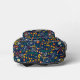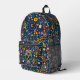 Colourful retro flowers in a seamless pattern on a custom navy blue background.